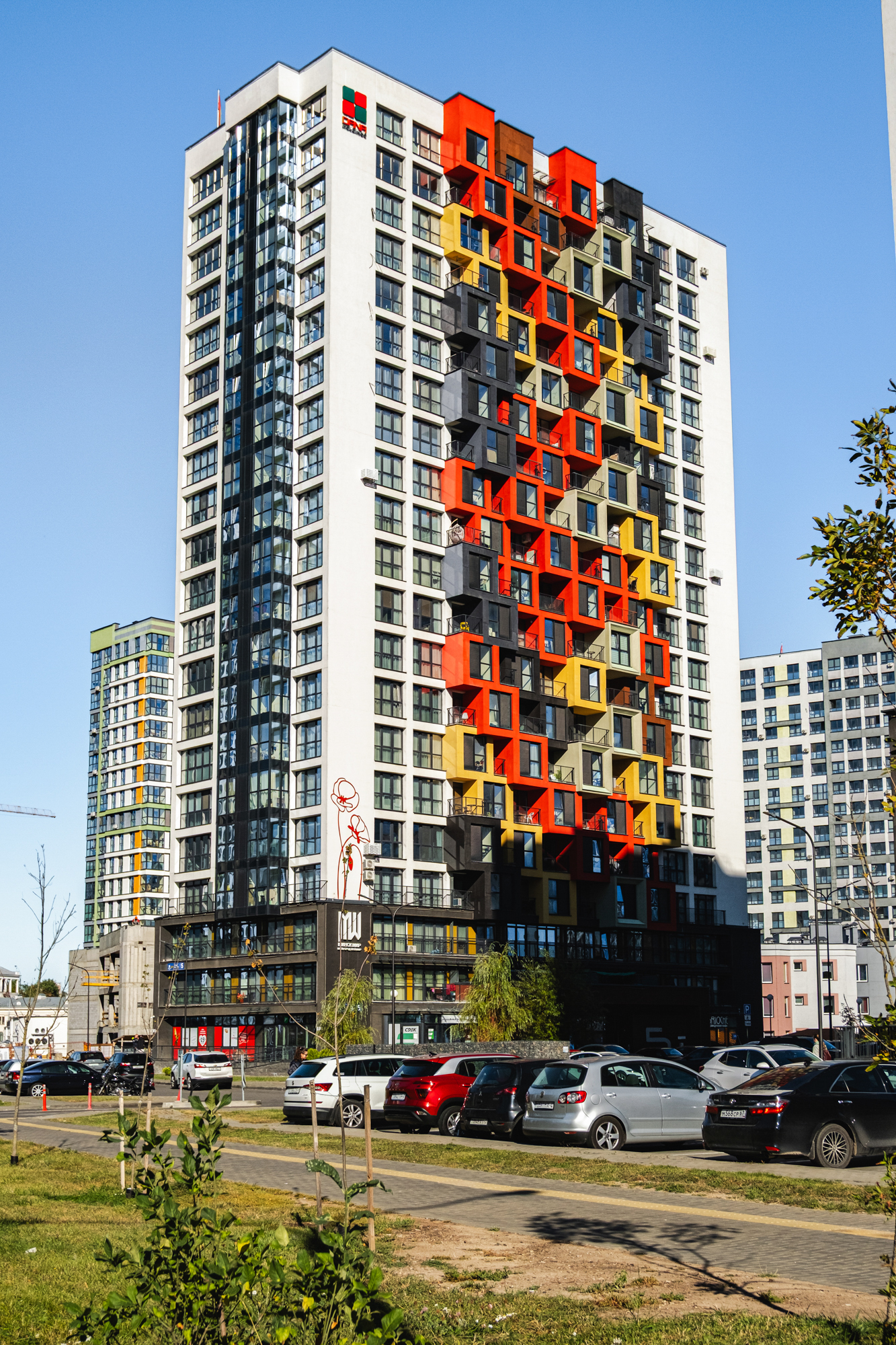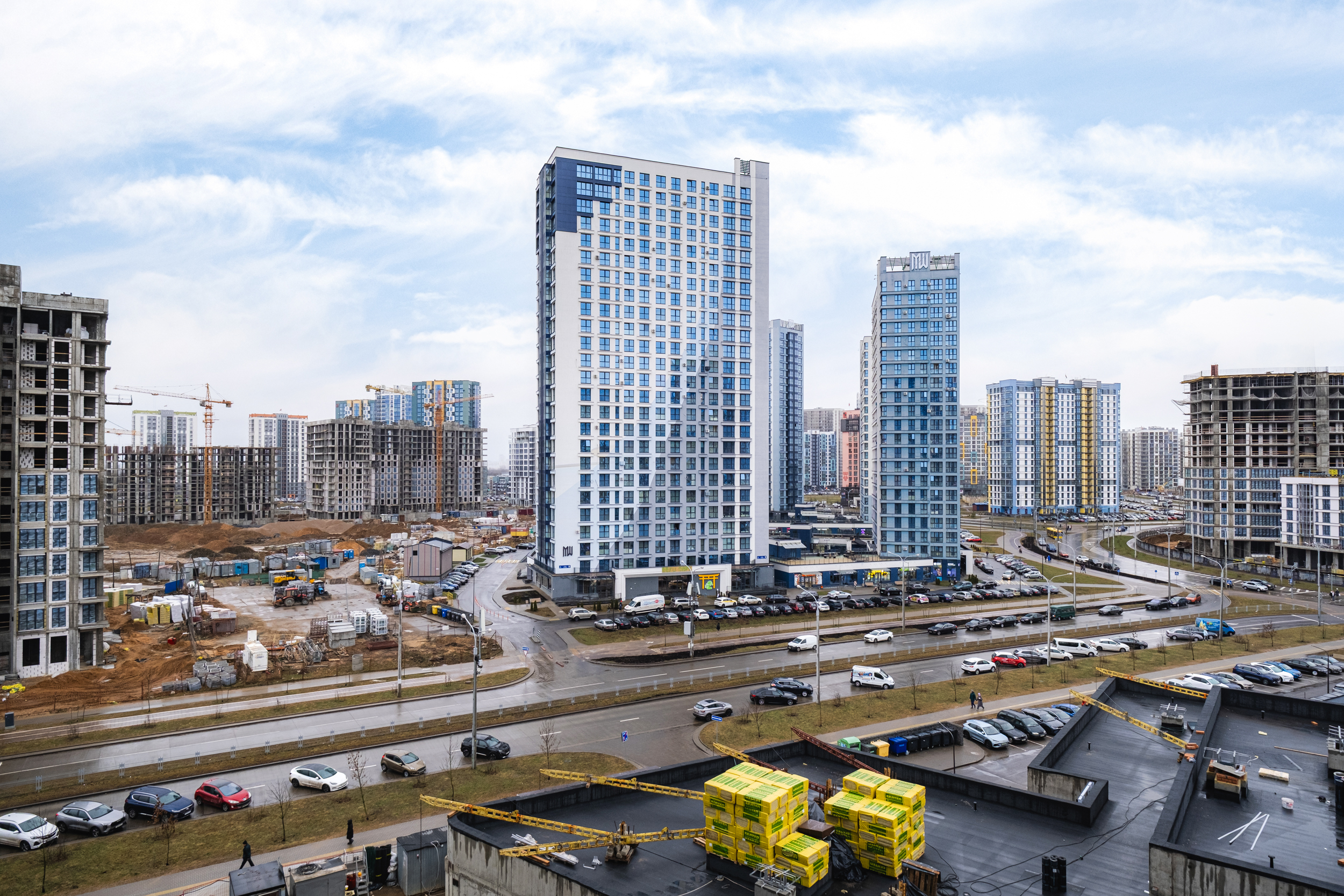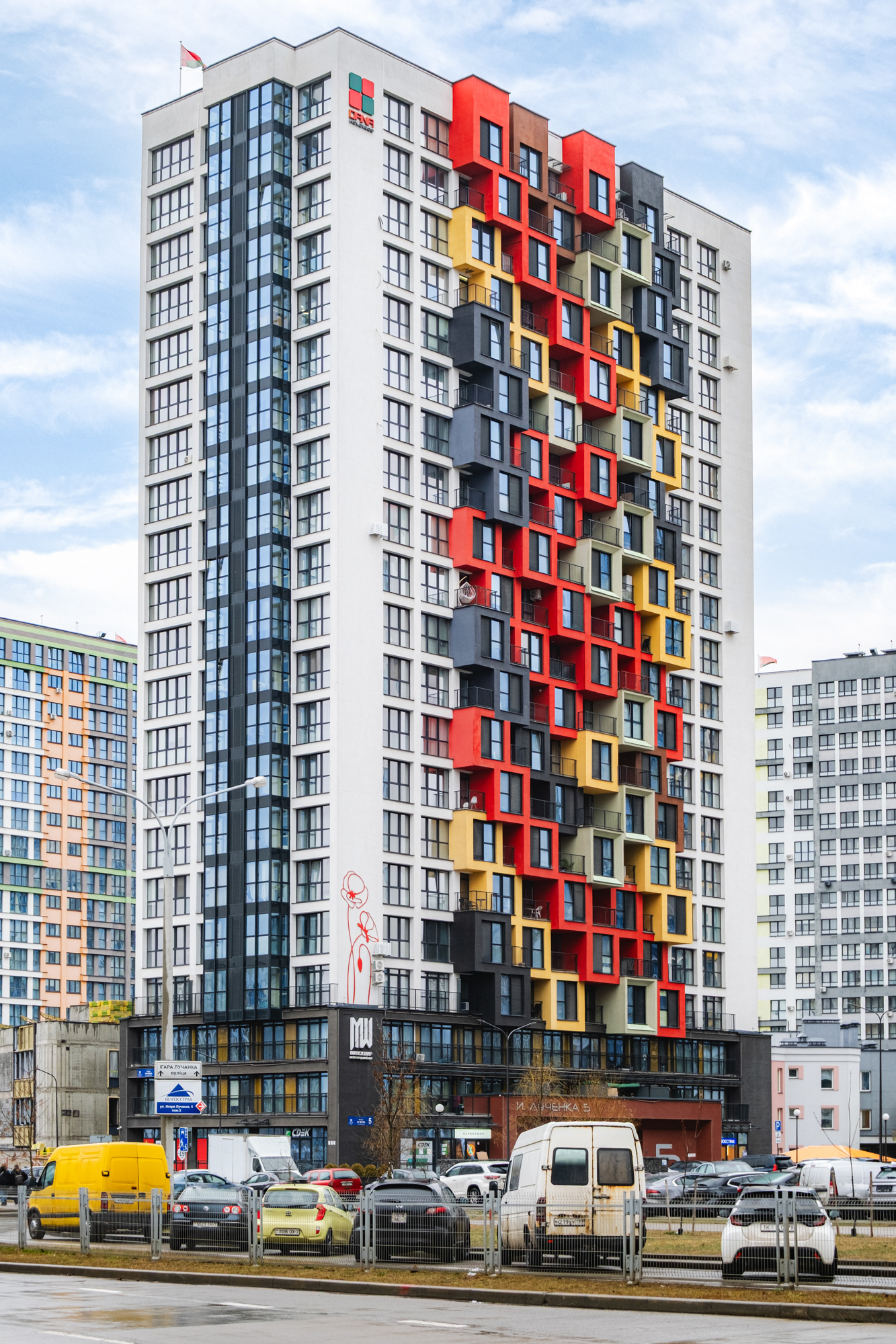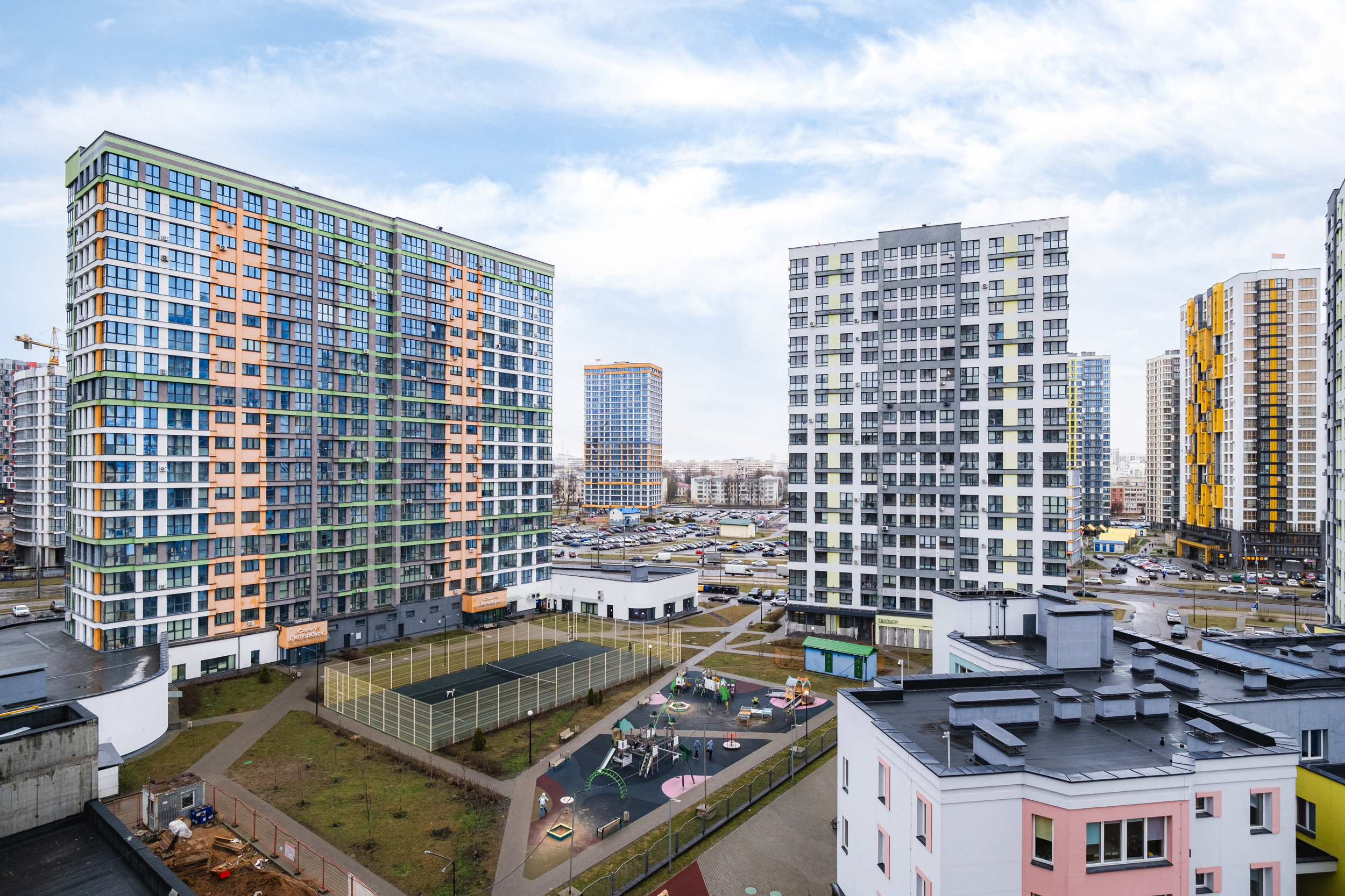 Рядом с домом: детский сад, современная детская площадка, в соседнем доме Санкт-Петербург(Лученка,1) магазин “САНТА”, в шаговой доступности наземная парковка и зона хранения мусора рядом остановка автобуса 100 – до пр.Независимости и пл.Октябрьская 10 минут общественным транспортом, до ст.метро “Аэродромная” 7 минут ходьбы, ст. м. “Ковальская Слобода” в 2-ух остановках от дома.
