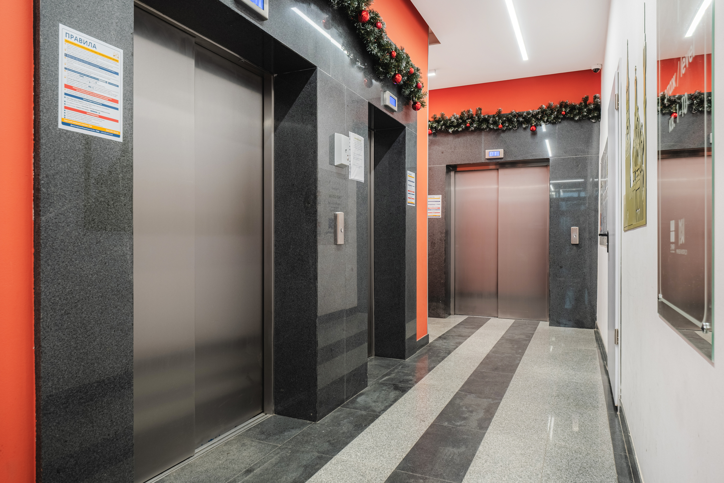 В доме имеются – три лифта известной компании OTIS, один из них панорамный;