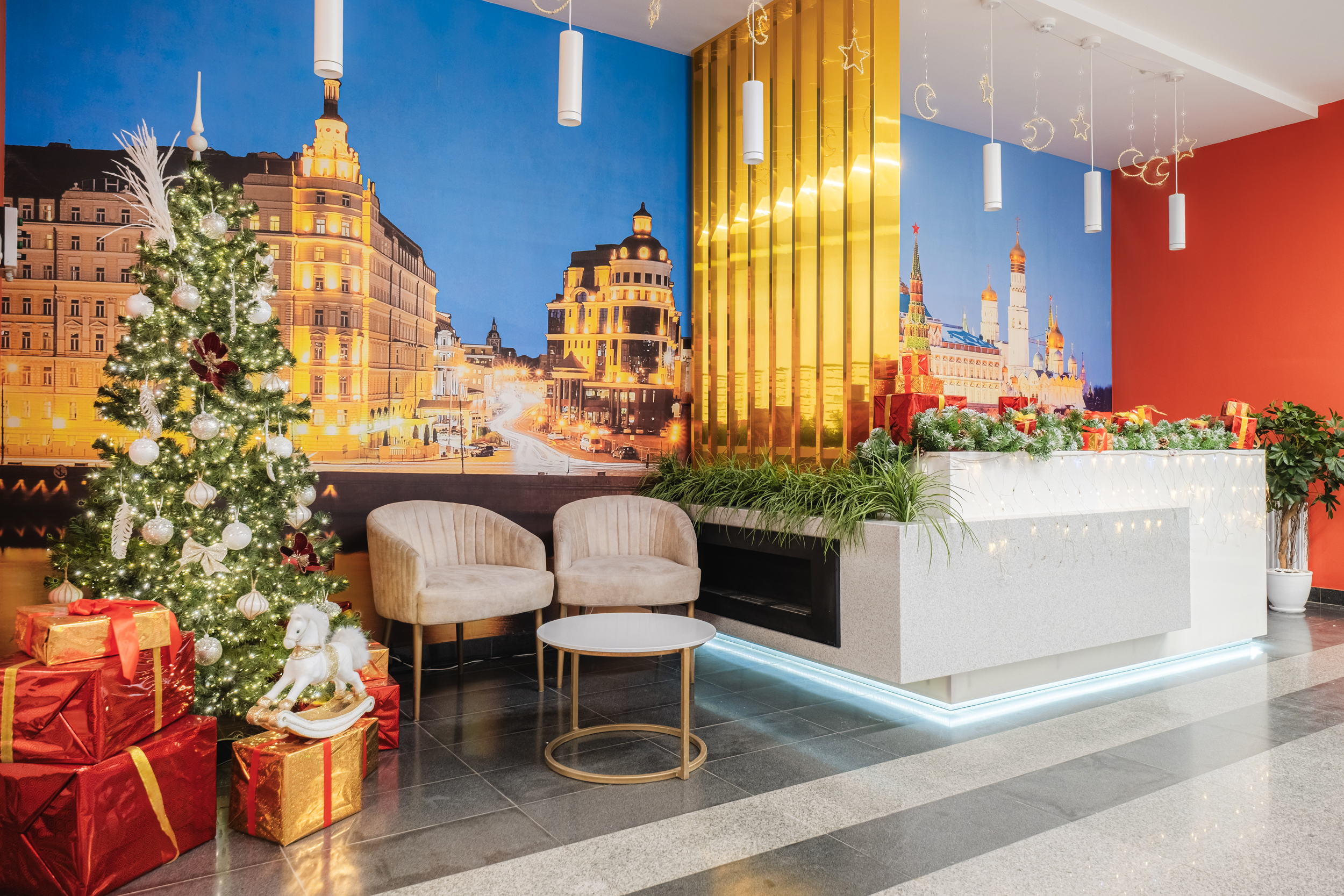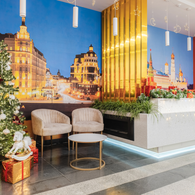 – дизайнерское лобби со стойкой-ресепшн и зоной ожидания гостей + санитарная комната;
