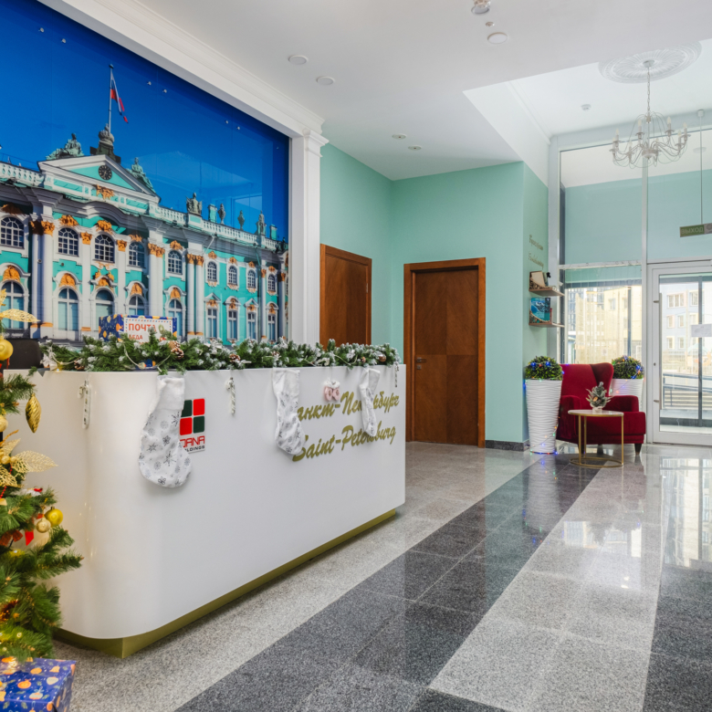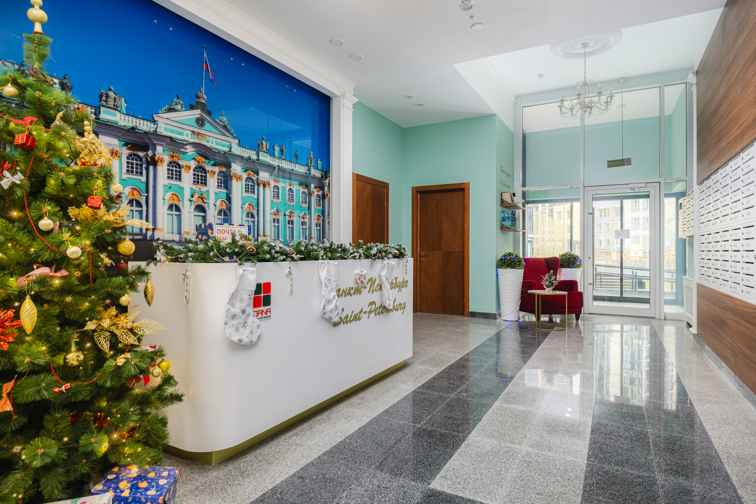На первом этаже расположено просторное дизайнерское лобби с местом для консьержа, зоной отдыха и санитарной комнатой (включая пеленальный столик для детей), лапомойки и стильные почтовые ящики.