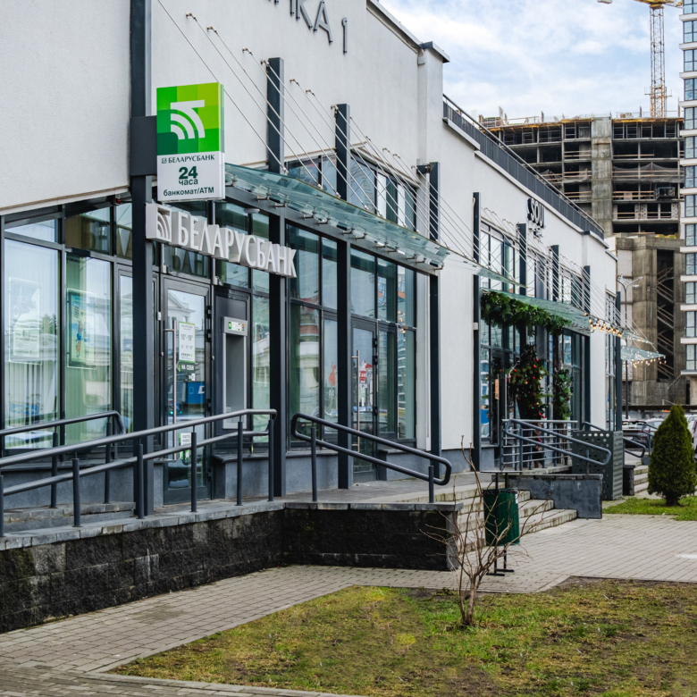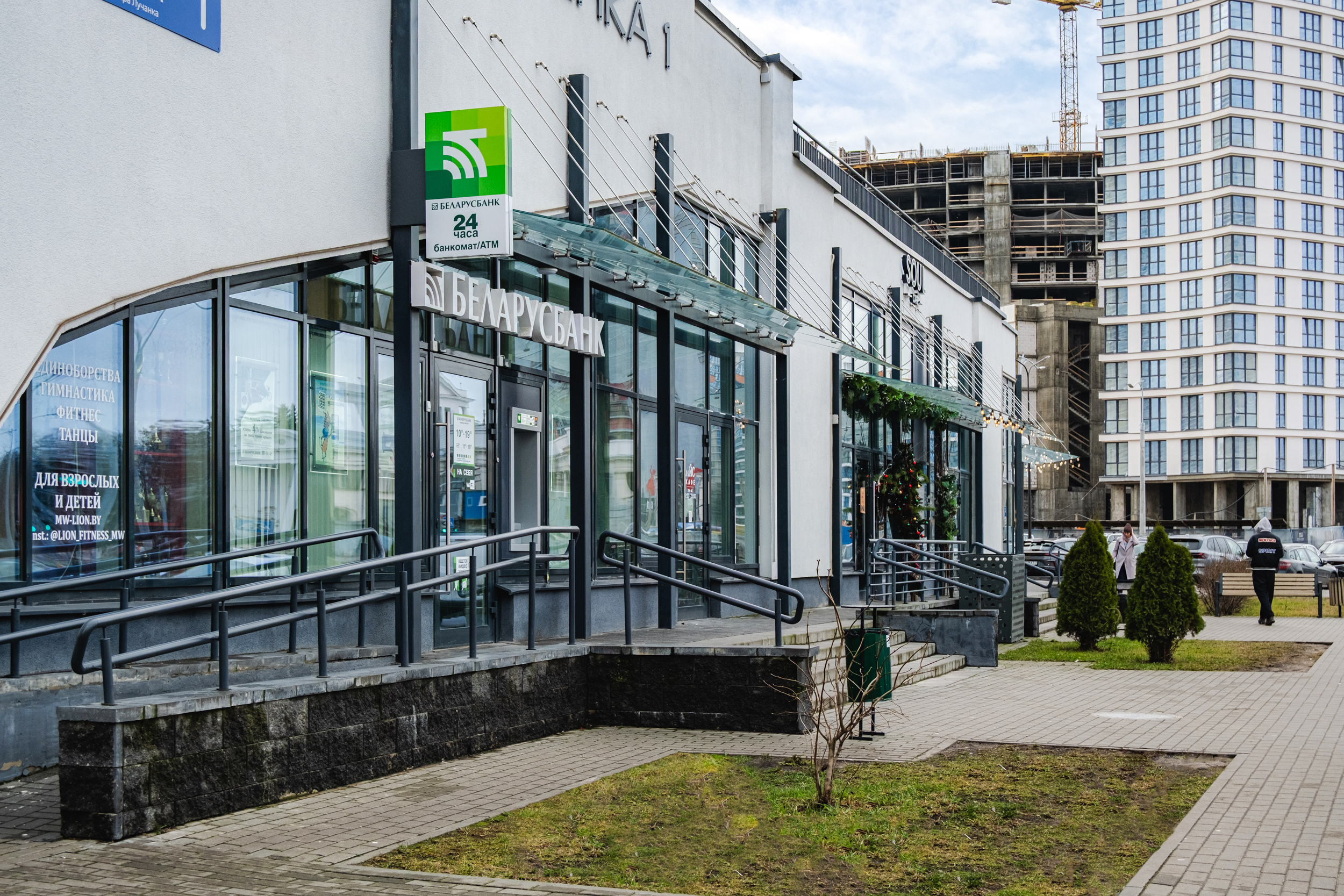 На первых этажах дома расположились: “Беларусбанк”, пекарня “Дражина”, супермаркет “Санта”.